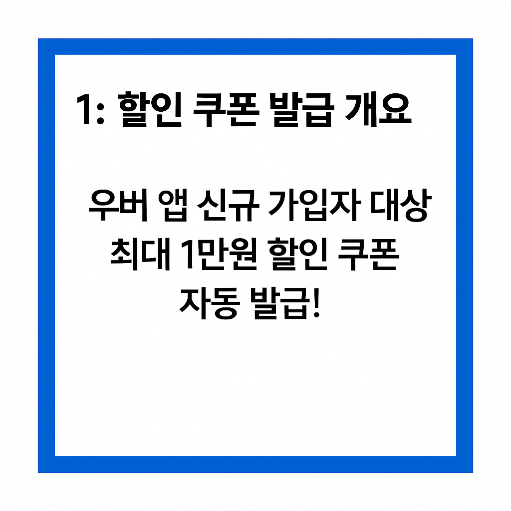 우버 앱을 다운로드한 후 회원가입을 완료하면, 첫 이용자 대상으로 자동으로 할인 쿠폰이 발급됩니다. 쿠폰은 앱 내 ‘프로모션’ 메뉴에서 확인할 수 있으며, 사용 시 최대 1만 원까지 택시요금이 할인됩니다.