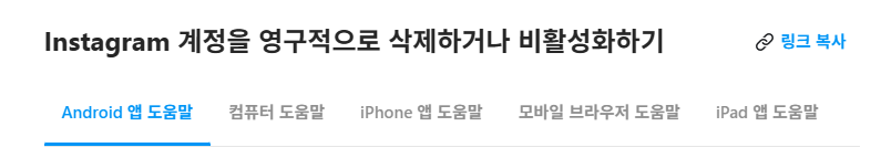 인스타그램 삭제 페이지에 접속하면 안드로이드, 아이폰, 컴퓨터에서 각각 인스타 탈퇴하는 방법을 확인해볼 수 있습니다.